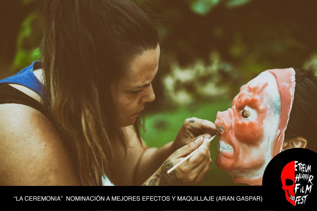 La Ceremonia ha sido nominada a mejores efectos y maquillaje en el festival internacional ETREUM FILM FEST 2022. Maravillosa noticia para Aran Gaspar, artífice de todos los FX que consolidan este cortometraje.