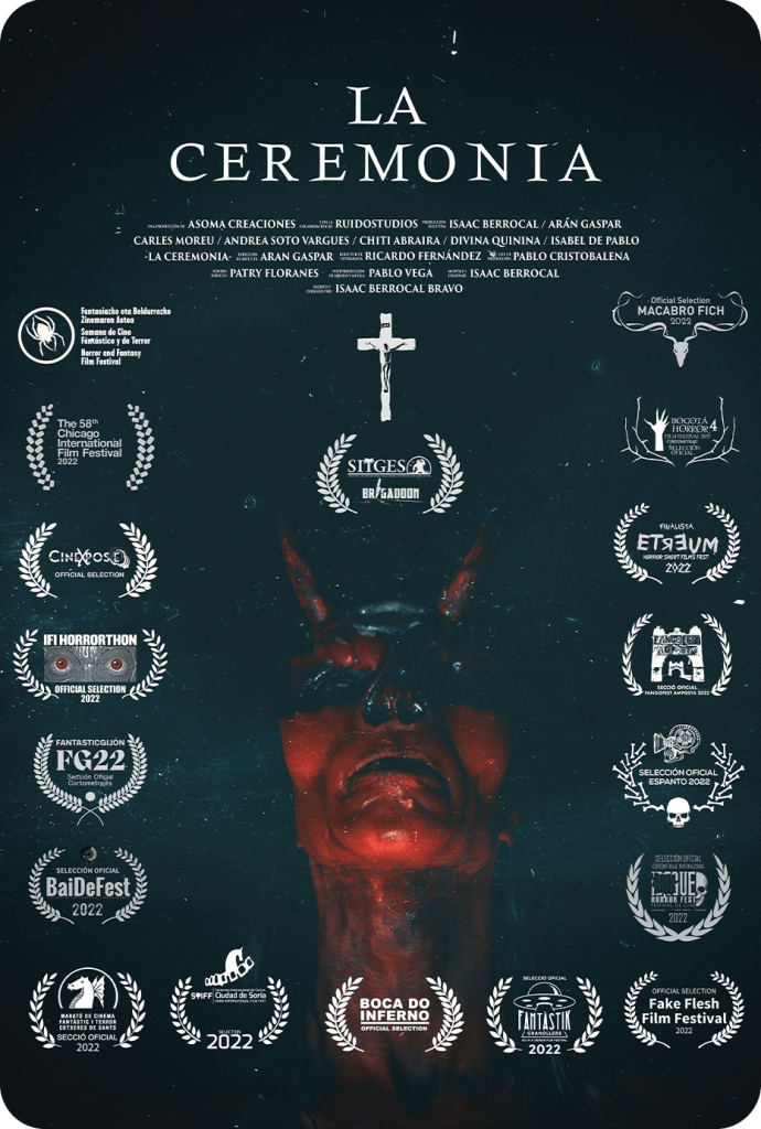 La Calima 2023La Ceremonia (2022)Vampus Horror Tales (2020)Mariela te Suicida (2019)La Proeza (2018)La Muerte de Ingria (2016)La Trampa (2015)Fly Dance & Dreams (2014)El Hombre Hemorrágico (2014)Killrats (2013)La Dantesca Escena (2012)Brindis por la Vida (2012)Don´t Forget (2012)Viewpoint (2011)El Ciervo (2011)Contranatura (2010)La Casa Brown (2009)Todays is Sunday (2008)Dunder-Büchse (2007)Stuffed Guts (2006)